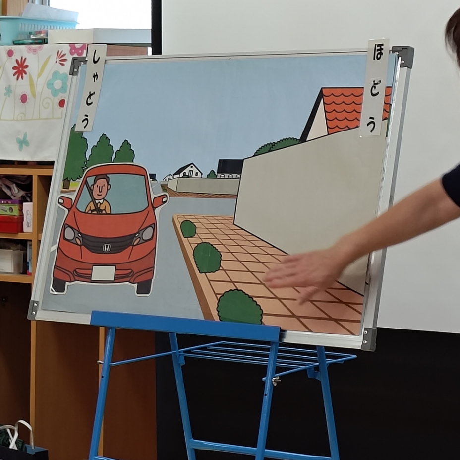 交通ルールや安全な横断歩道の渡り方を学び、みんなで安全確認の練習もしました。