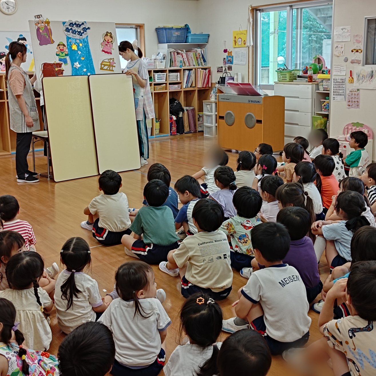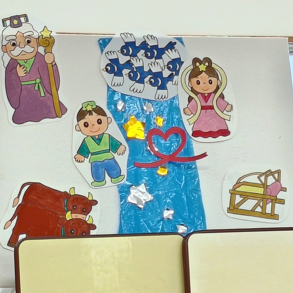 織姫と彦星のお話を劇で見たあと、みんなでお歌をうたって、年に一度のふたりの再会をお祝いしました。
