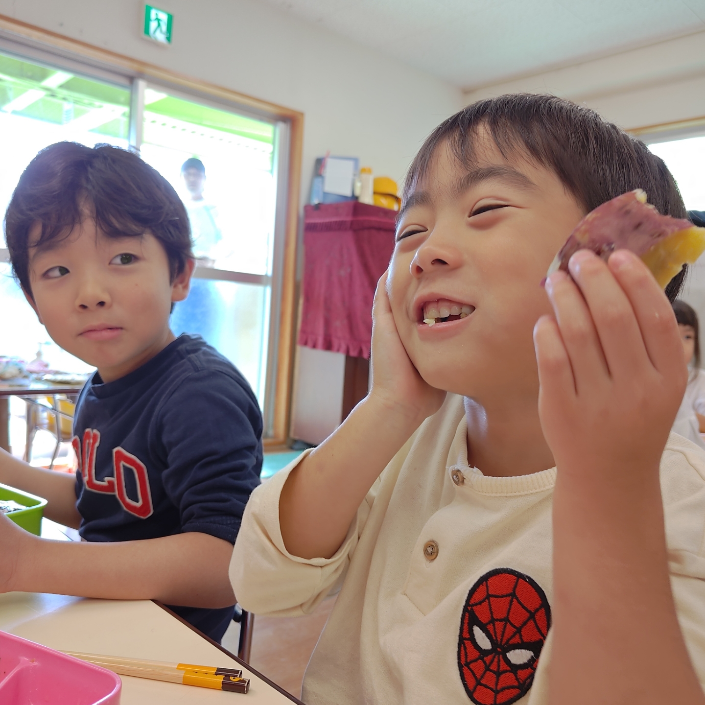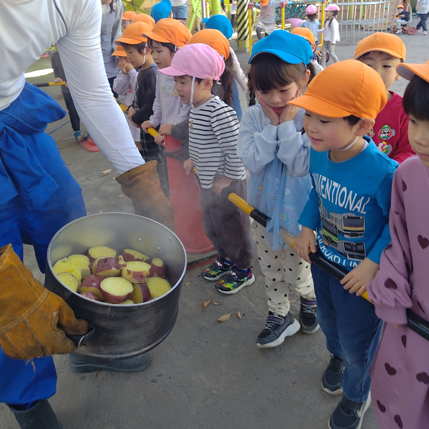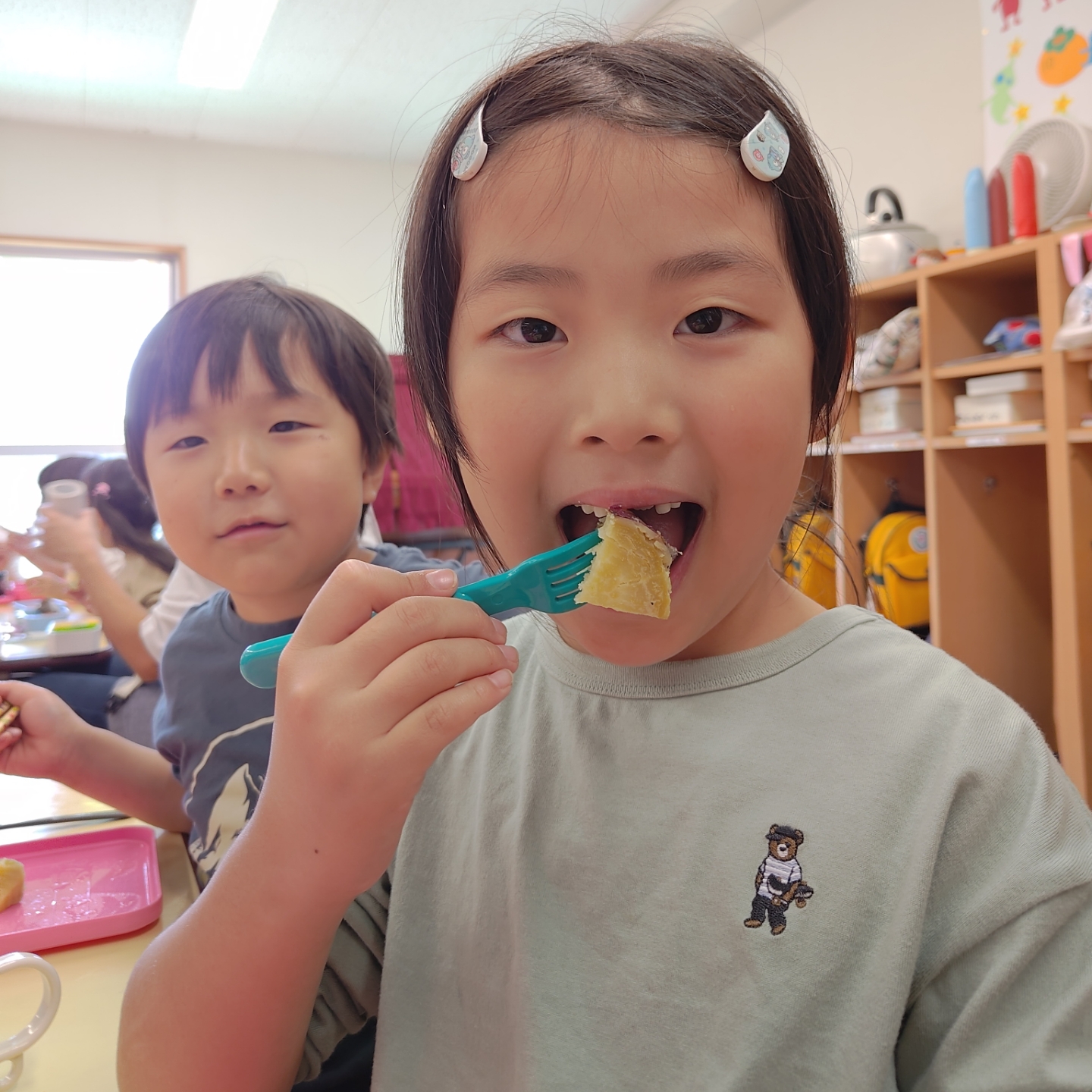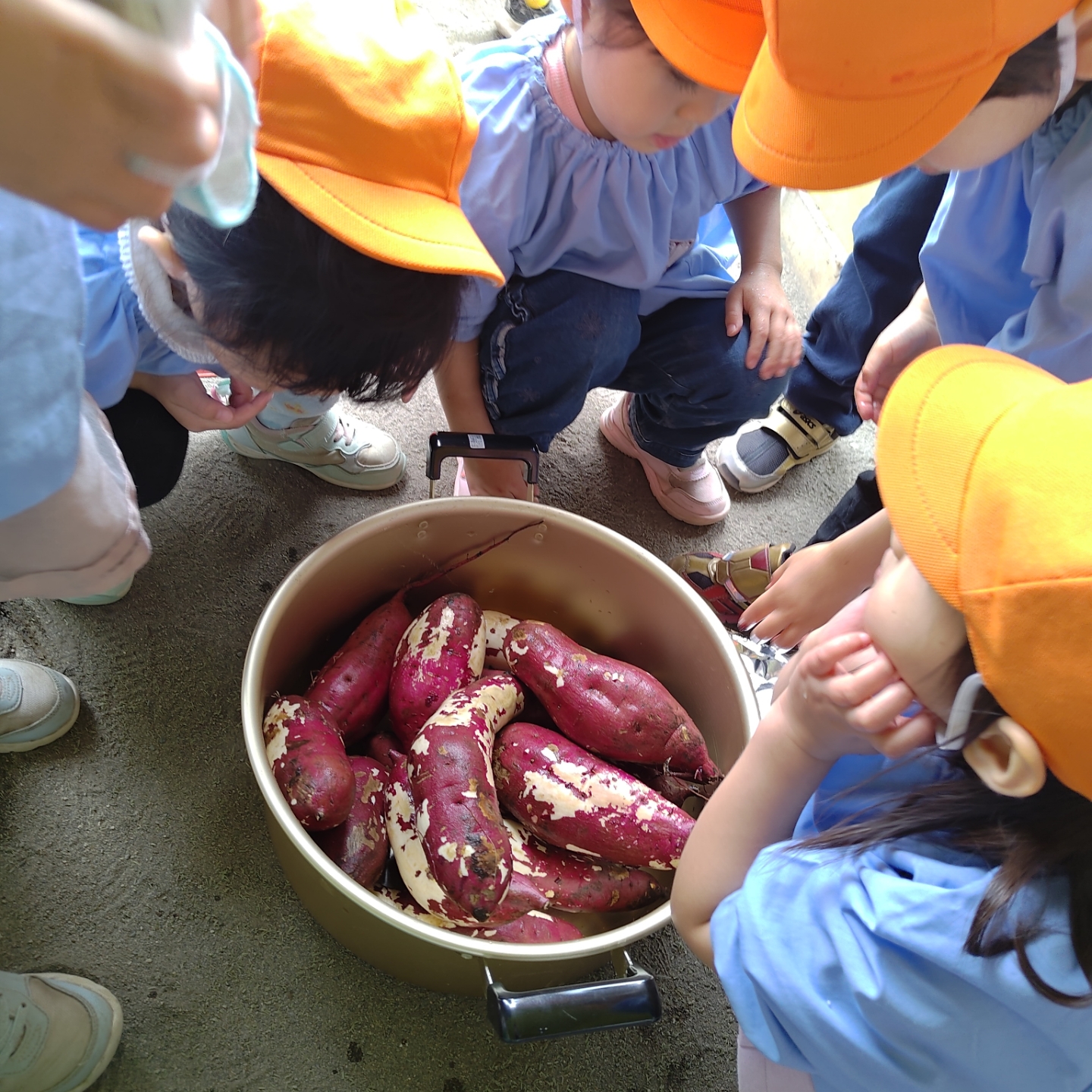 お昼ごはんの時間には、みんなでホクホクのふかし芋をいただきました!