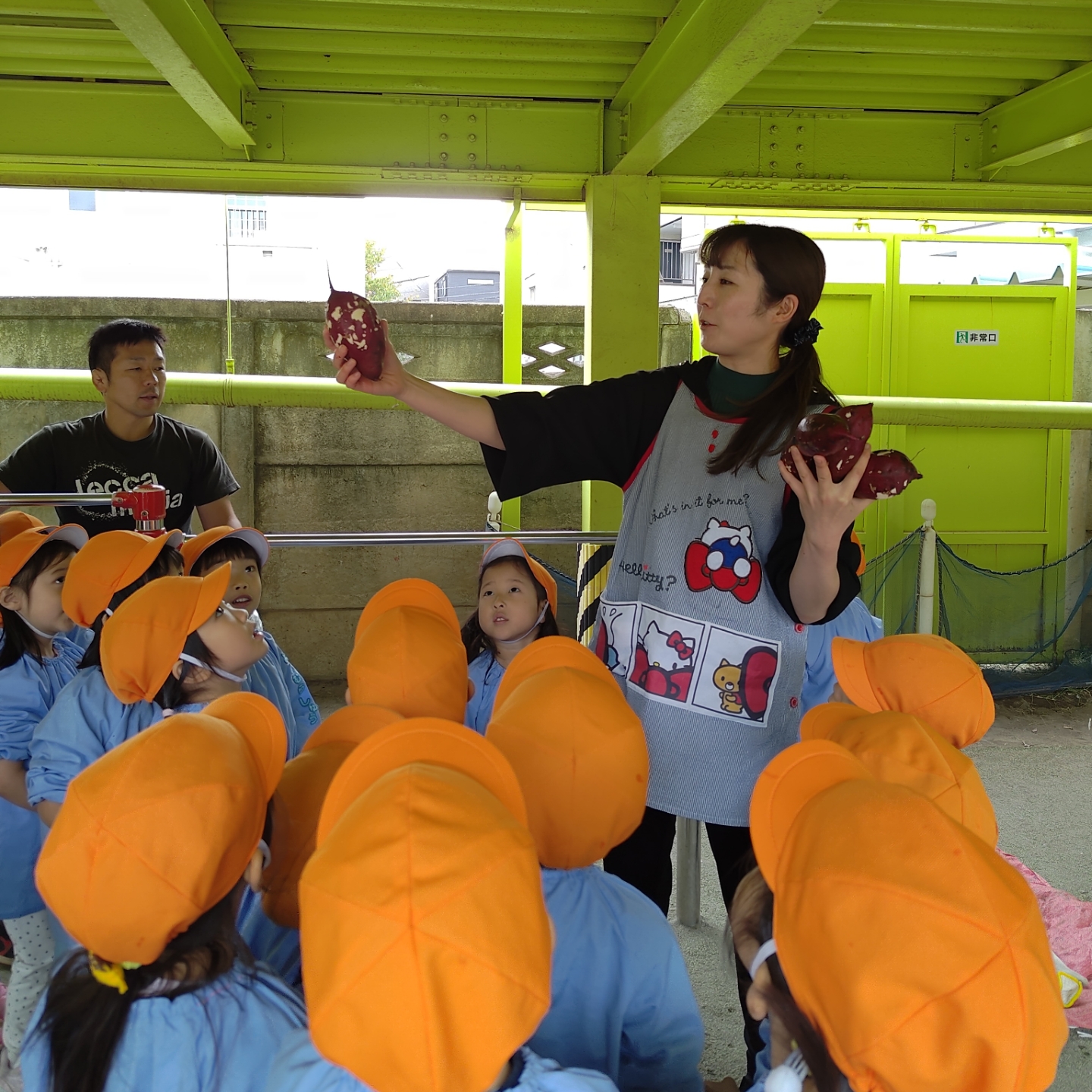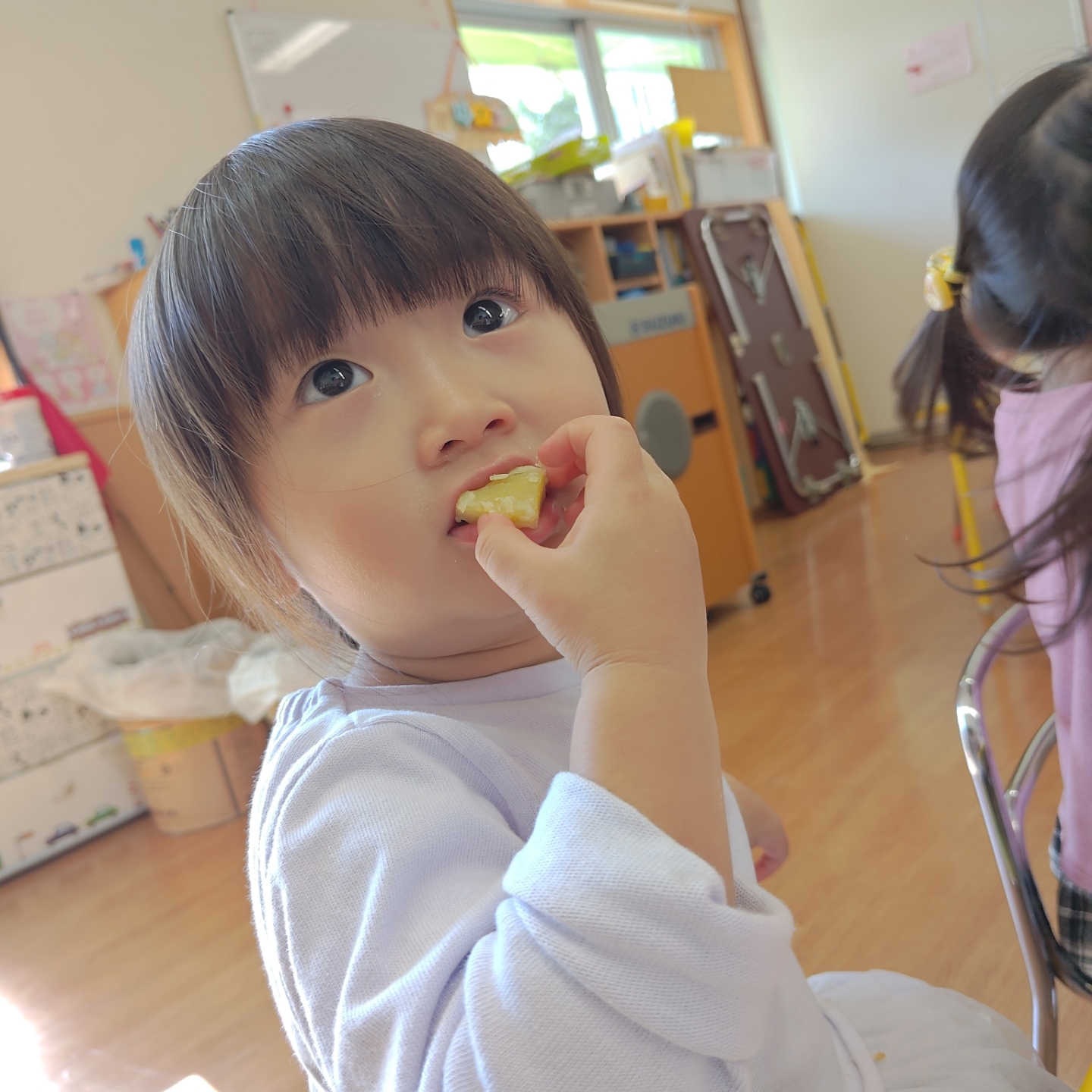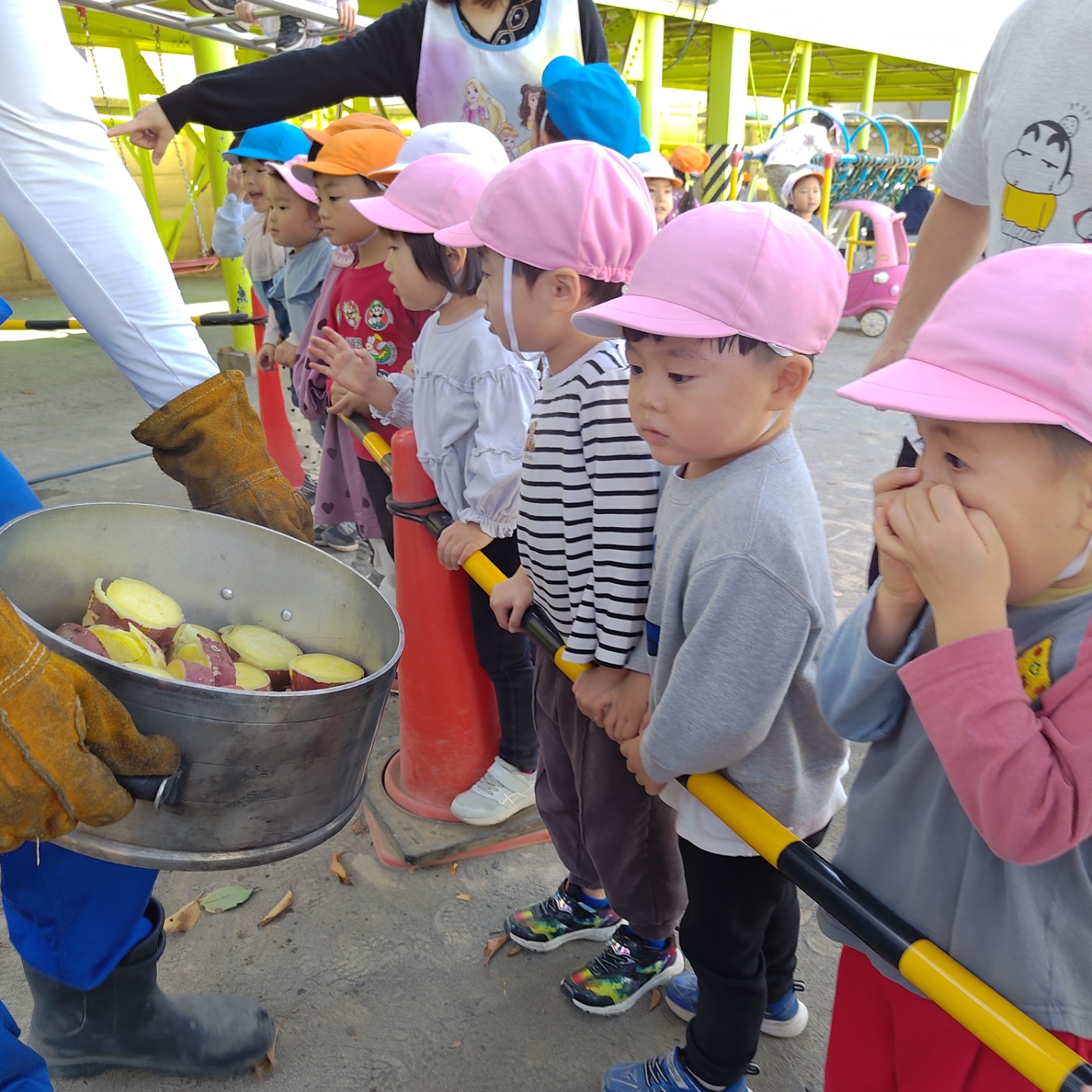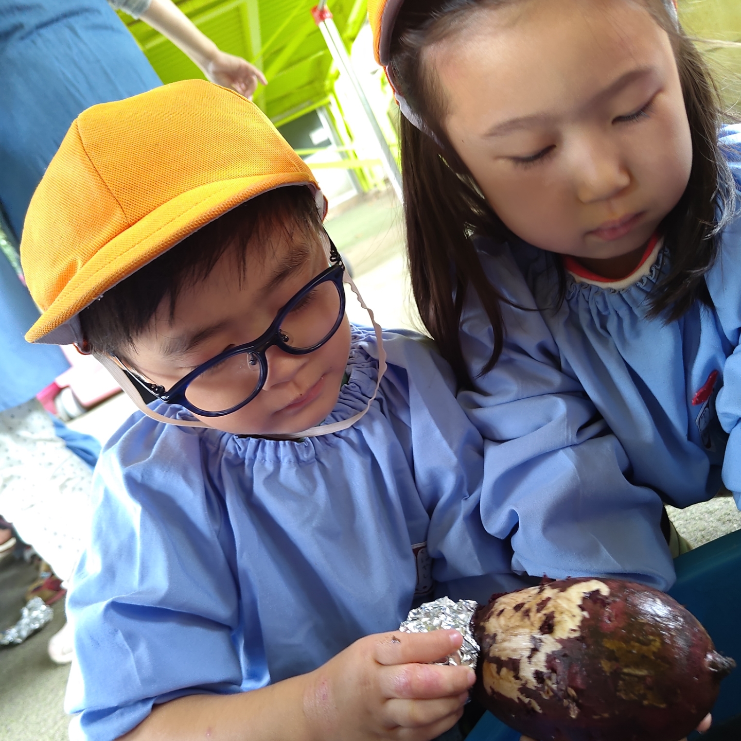 お昼ごはんの時間には、みんなでホクホクのふかし芋をいただきました!