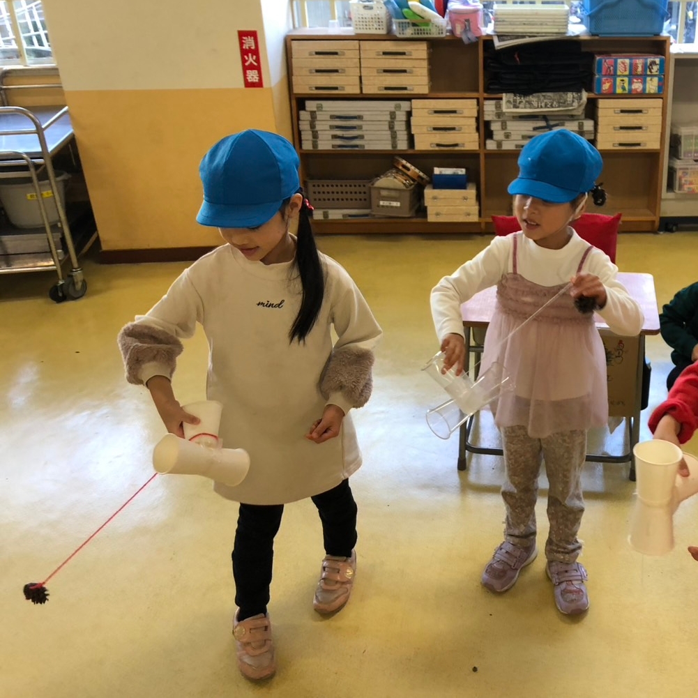 お兄さん・お姉さんが心を込めて作ってくれた手作りおもちゃで遊ばせていただき、子どもたちは笑顔いっぱいで、とても楽しい時間を過ごすことができました。