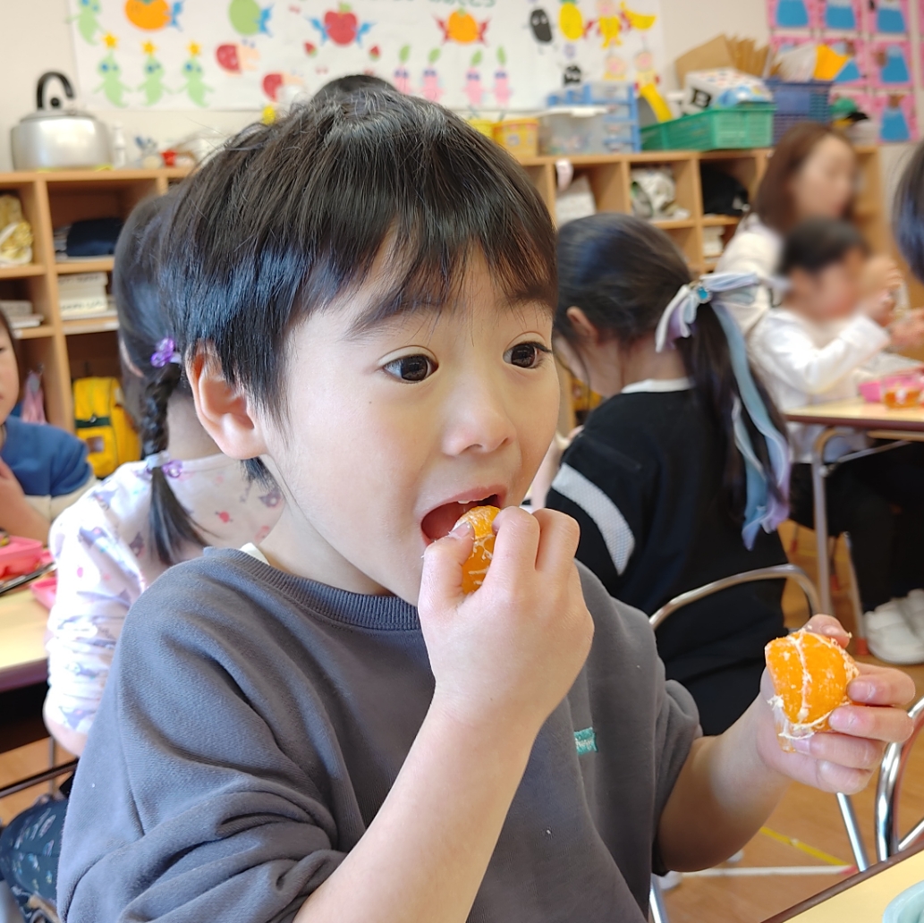 自分たちの園で育ったみかんを、みんなで美味しく味わいました。
