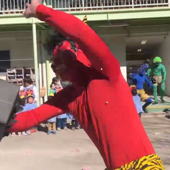元気いっぱいの掛け声と園児たちのパワーで、鬼たちをしっかり追い払うことができました!