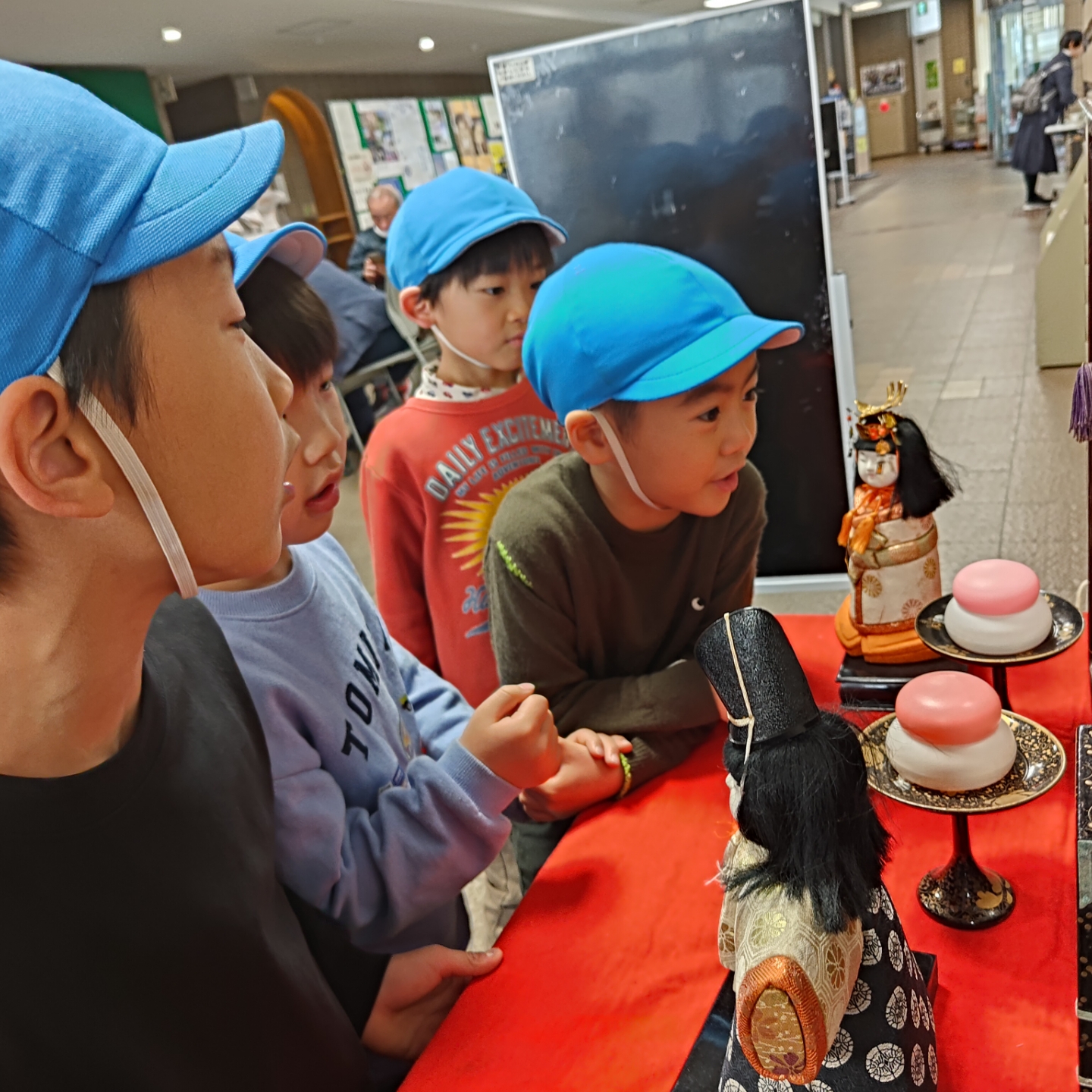 三鷹市コミュニティセンターに展示していただいている折り紙作品を、年長クラスのみんなで見に行きました!