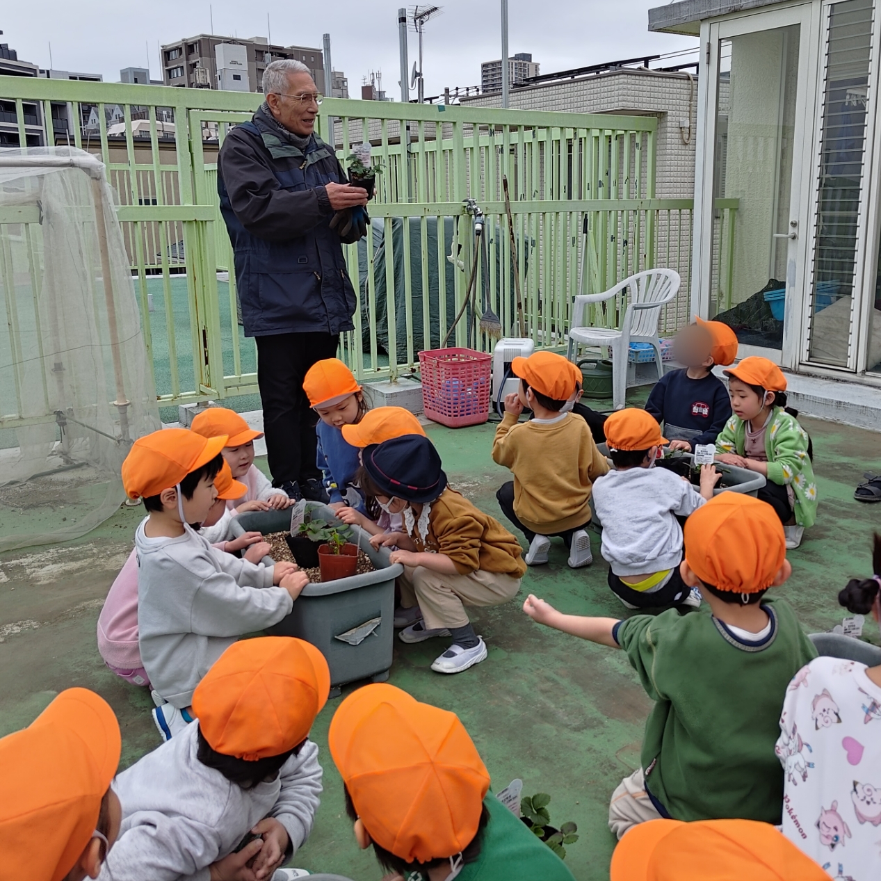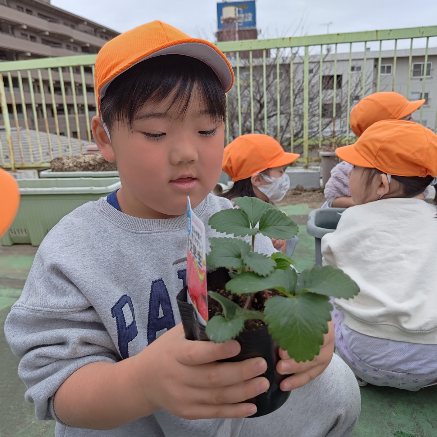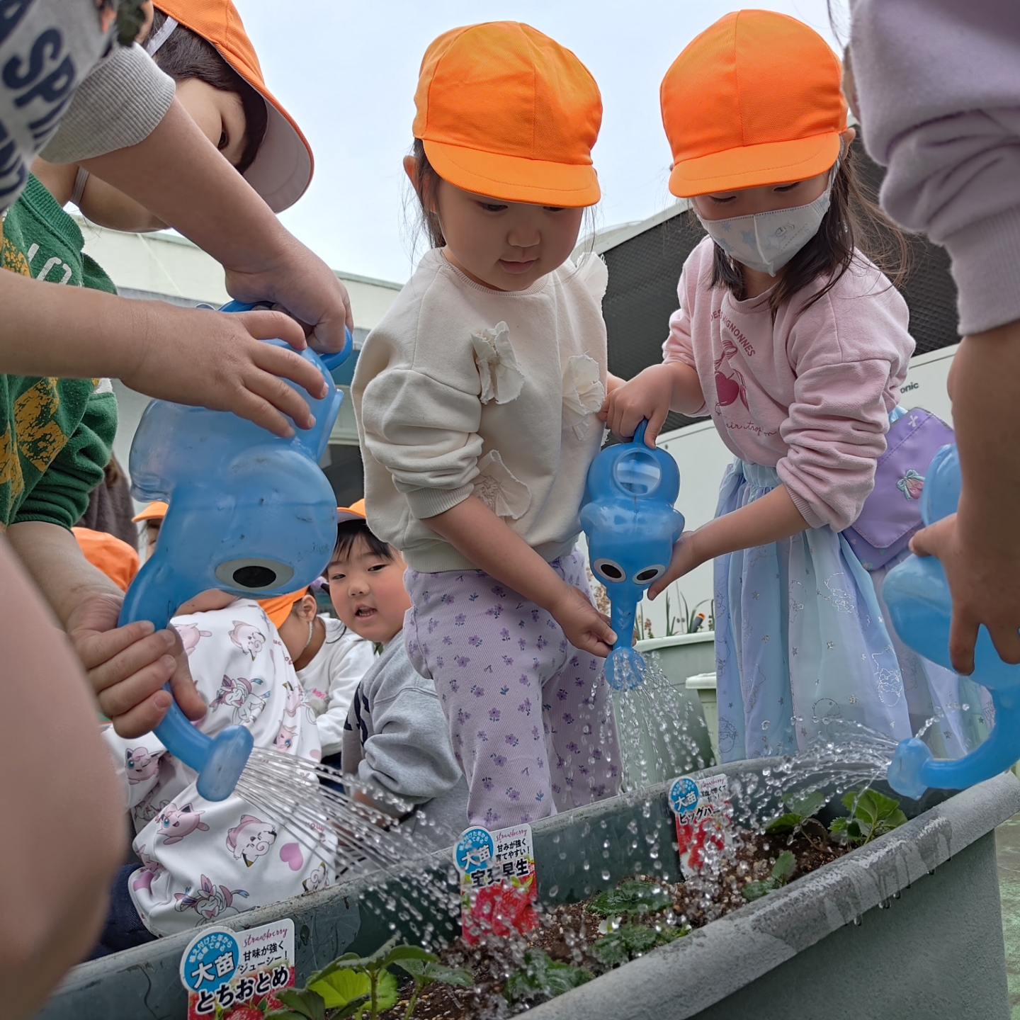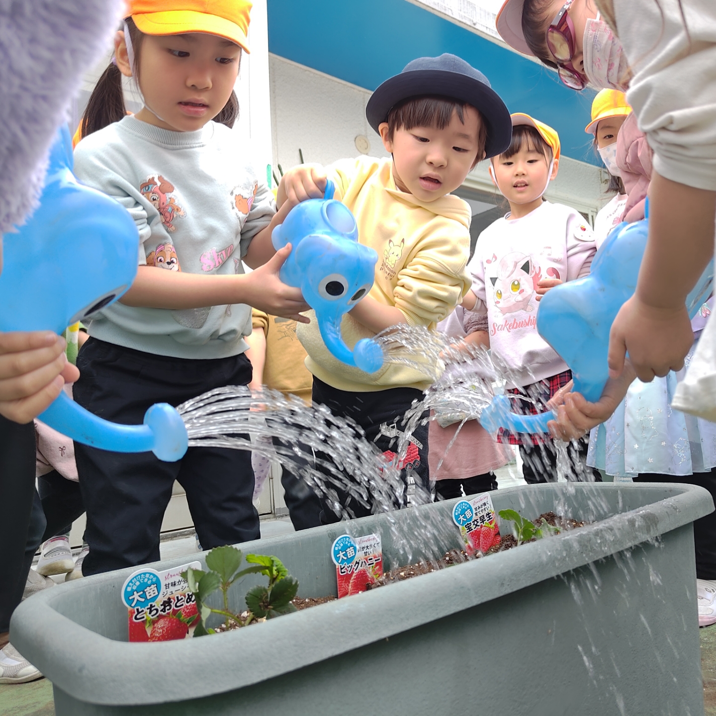 今日は、職員指導のもと、年中さくら組のみんなでいちごの苗を植えました。