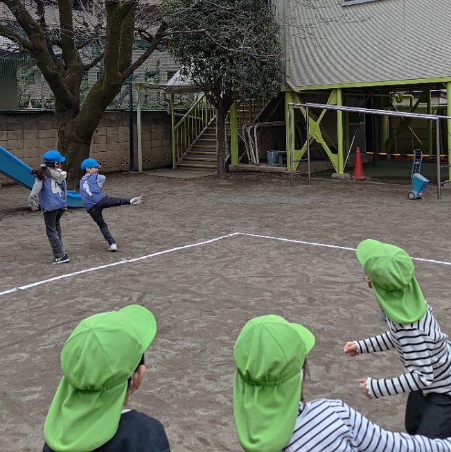 今日は地域交流の一環として、グローバルキッズ三鷹園のお友だちと一緒に、ドッジボール大会を開催しました✨