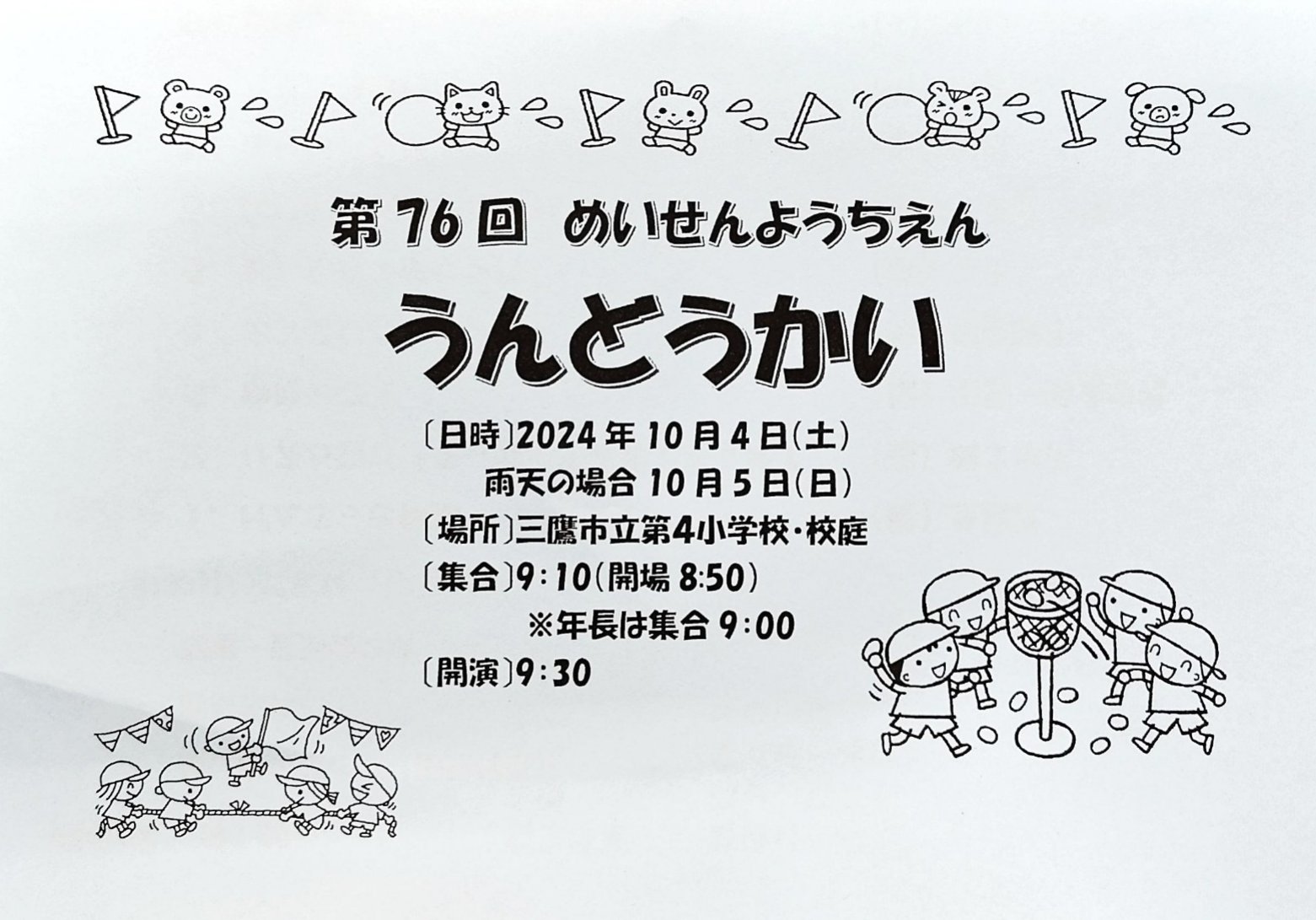 第76回、明泉幼稚園運動会を連雀学園三鷹市立第四小学校で行います。