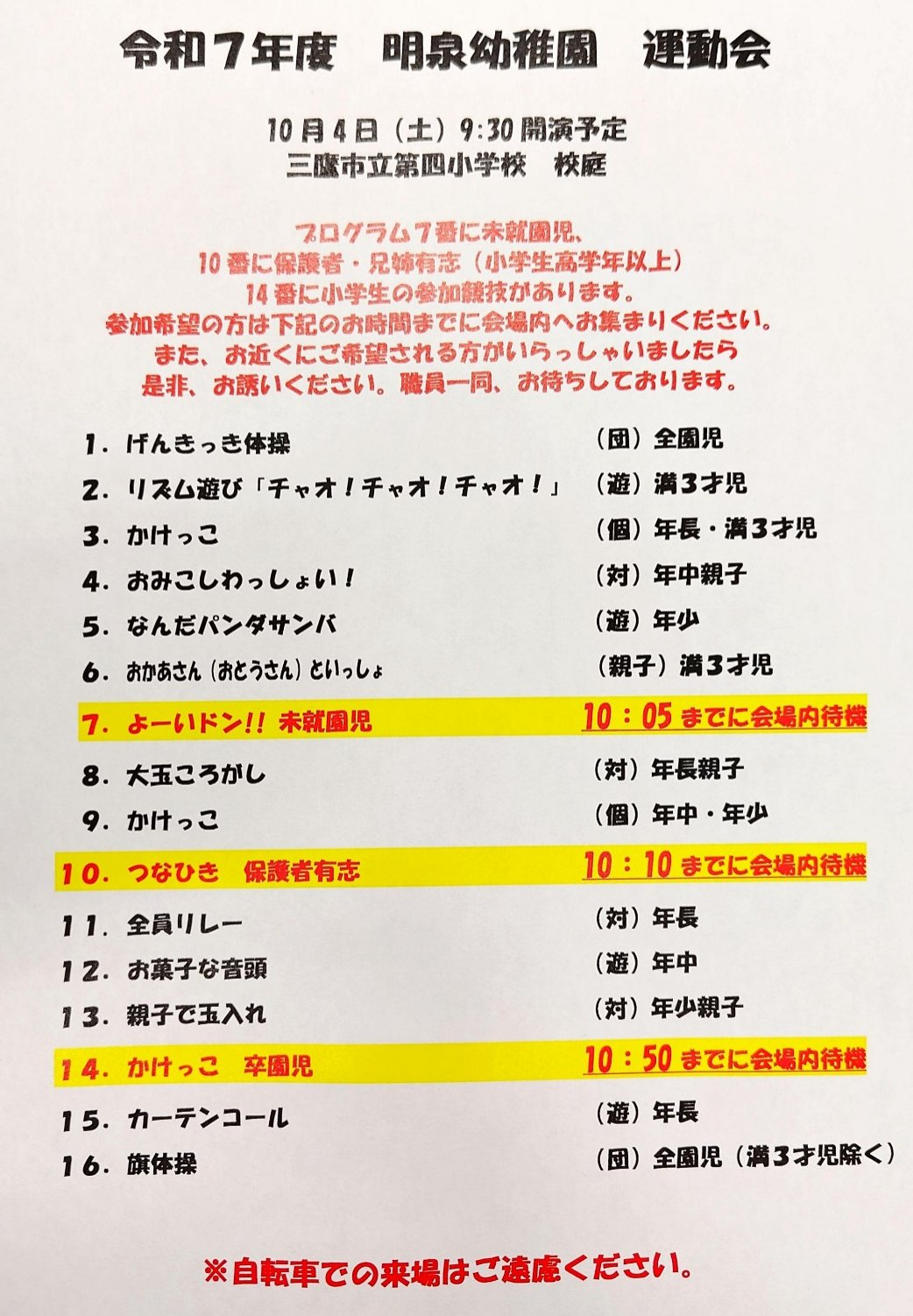 | 日時 | 2025年10月4日(土) 9:30〜 ※雨天延期10月5日(日) |